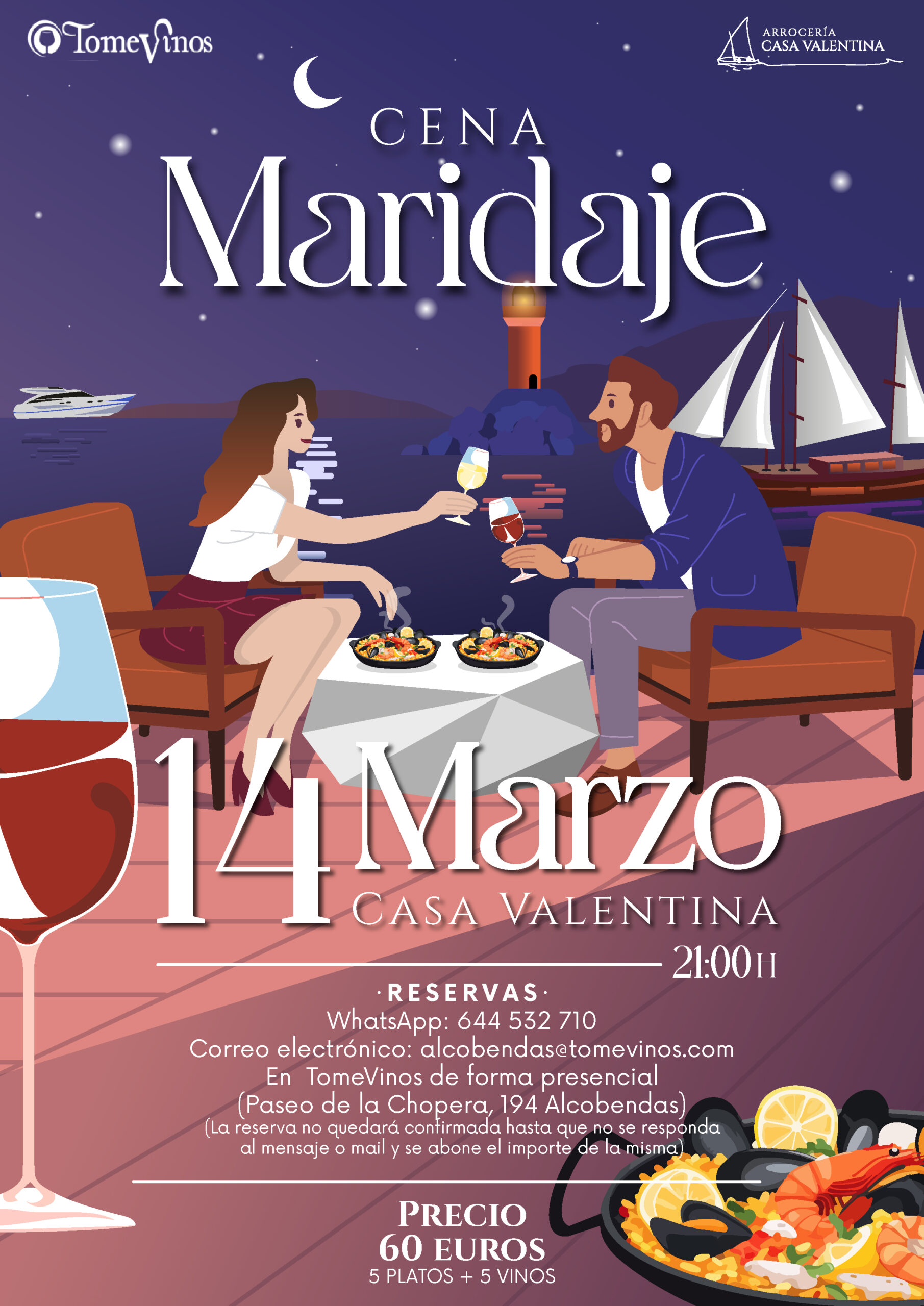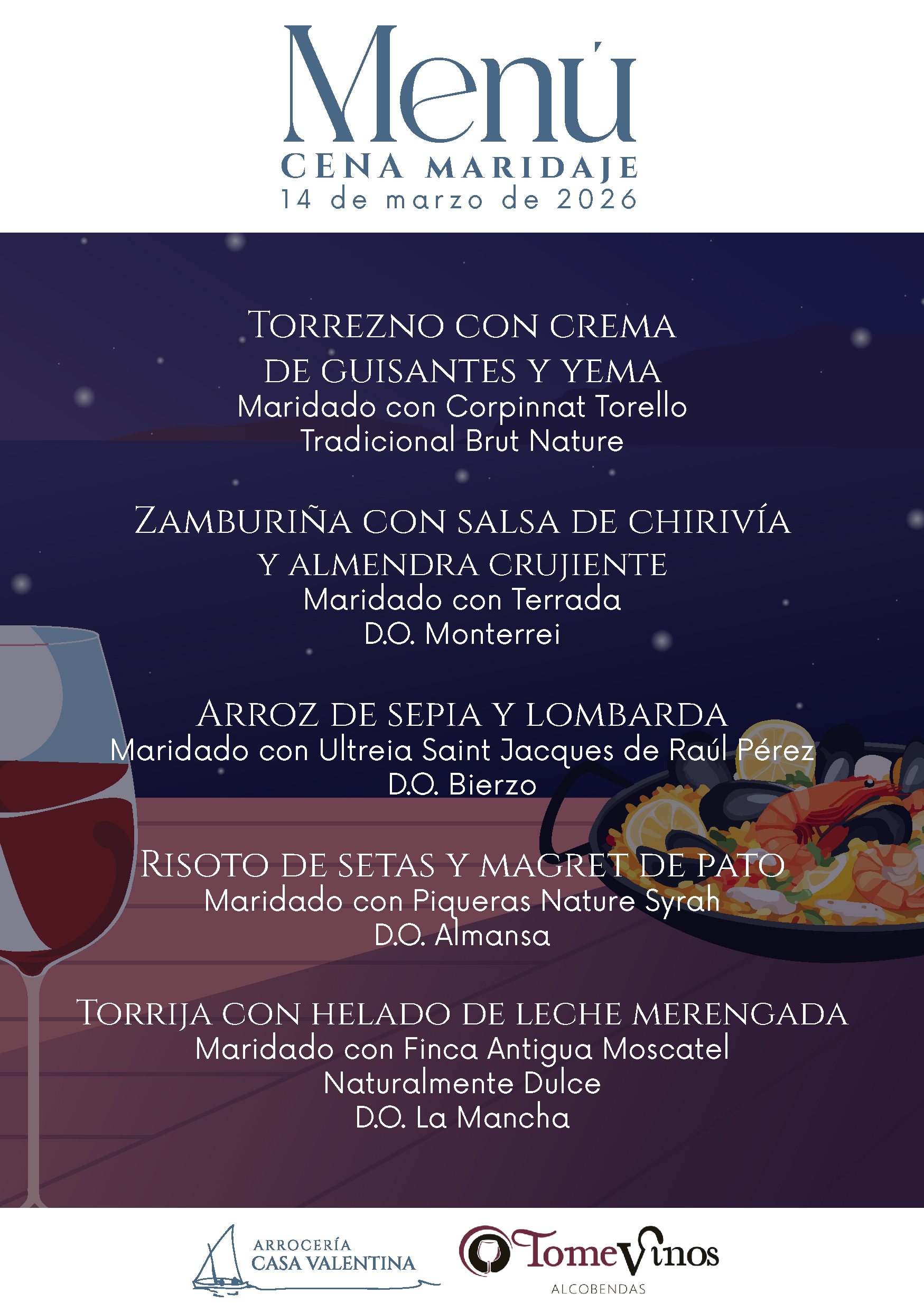 Casa Valentina organiza una Cena Maridaje para la noche del 14 de Marzo.